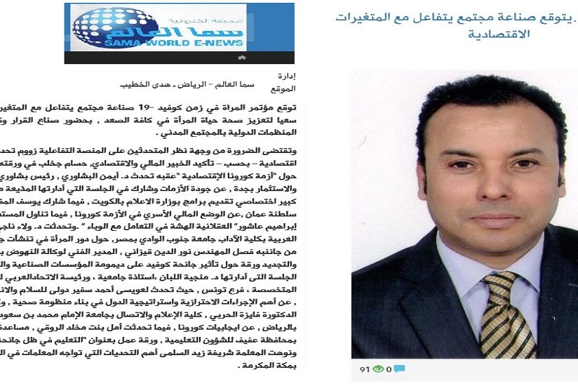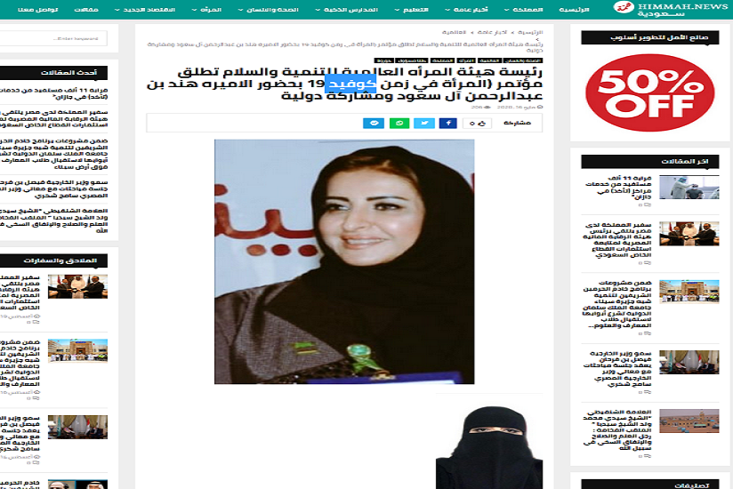 ئيسة هيئة المرأه العالمية للتنمية والسلام تطلق مؤتمر (المرأة في زمن كوفيد 19 بحضور الاميره هند بن عبدالرحمن آل سعود ومشاركة دولية